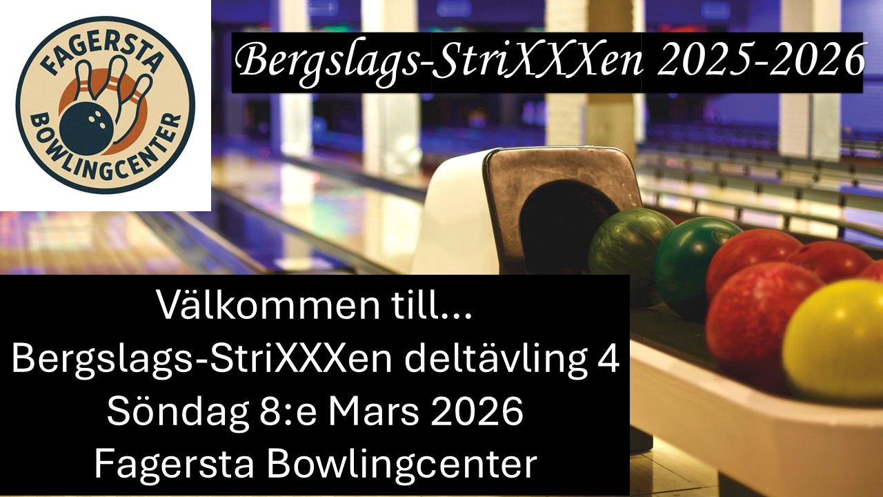 På Söndagen så avgjordes den sista deltävlingen för säsongen i Fagersta Bowlinghall, då Bergslags-StriXXXen 2025/2026 avgjordes. Som lite Final-spel så avslutade man dagen med final-spel för Herr & Dam, där topp 4 gick till semi-final, och vinnarna möttes i en avgörande Final. Det blev mycket jämna semifinaler, och mycket känslor kom fram hos de nervösa spelarna som fick spela sina serien inför en fullsatt bowlinghall.